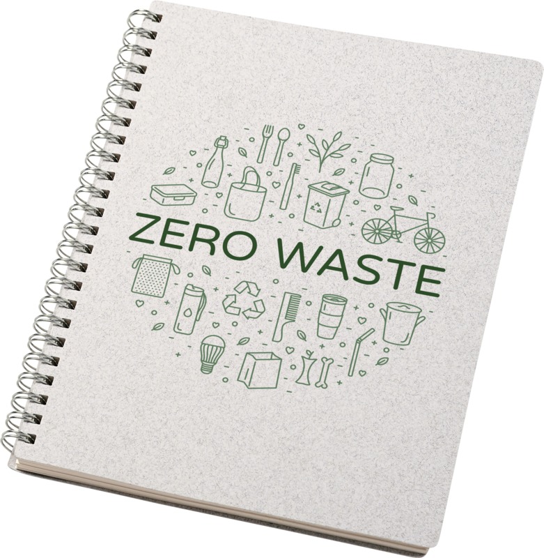 Bloco de notas com argolas de tamanho A5 feito com uma capa com certificação FSC de origem responsável
